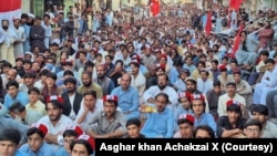 د ستمبر پر 13 په ږوب ښار کې د څلورو ملتپاله ګوندونو ګډې احتجاجې غونډې ته د عوامې نېشنل ګوند صوبایي مشر اصغر خان اڅکزي وويل، په بلوچستان کې امنتیي حالت وﺭځ په ورځ خرابیږي او وایي د امنيت لپاﺭه پوليس او ليويز ته اختياﺭات وﺭکول پکاﺭ دي: