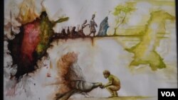 د پښتونخوا کالج آف اړټس طالبعلمې مشعل وفا هم دې نندارتون کې خپل پینټنګز نندارې ته وړاندې کړي وؤ، وي او ای ډيوه سره خبرو کې هغه وایي، افغانان د یو ښه راتلونکي په هیله دلته ژوند کوي اؤ هغې پخپل پینټنګز کې د افغان کډوالو دغه هېلې اؤ هڅې انځور کړې دي.
