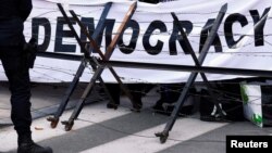 ښاغلي افراسیاب خټک وي او اې ډیوه سره په خبرو کې وویل چې د امریکا په کوربه توب د ډیماکراسۍ یا جمهوریت بین الاقوامي ناستې کې د برخه اخیستو نه د پاکستان انکار، درې وجې لرلی شي، چې یو یې په پاکستان کې دننه پخپله د جمهوریت کمزوري، په مطبوعاتو باندې بندیزونه، د حقونو د فعالانو ځورونه او بندیوان کول، او داسې نور کیدی شي.
